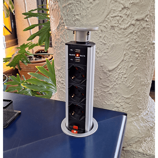 Tomacorrientes embutido para escritorio con cargador con switch de encendido/apagado, 3 módulos, 16A, 2 entradas USB.